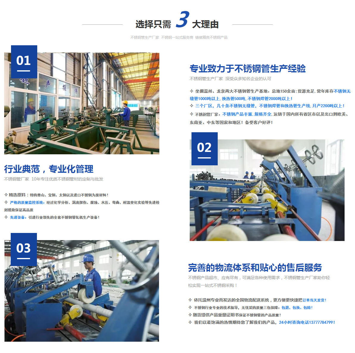 浙江奔際不銹鋼有限公司,創建于2008年,注冊資金一億元。主要產品有不銹鋼無縫管、鍋爐和換熱器管、冷凝器管、不銹鋼焊管、不銹鋼管件、不銹鋼法蘭等產品,是國內不銹鋼管材配套領域品牌領先企業之一。公司占地4萬平方米,現有員工200余人,是中石油定點供應商,中廣核、長江三峽集團、大唐電力、臺塑等合格供應商。...